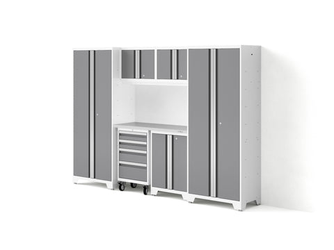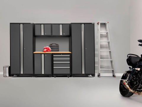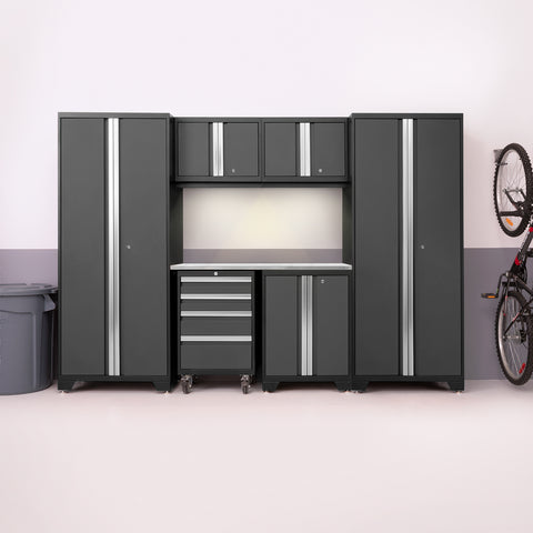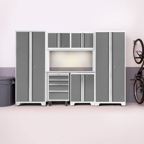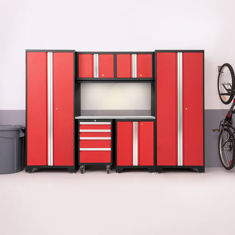 Designed to make a big statement in garages, workshops, mudrooms and other areas of your home, the Bold Series cabinet system instantly upgrades the look of your space, providing you with organized storage for all your belongings. Built with heavy-duty 24-gauge steel for added strength, these cabinets are ready to hold everything from sports equipment to gardening tools, and the durable coating ensures long-term protection against everyday heavy use. Full-length integrated handles allow you to quickly and easily access your gear, and adjustable steel shelves give you the flexibility to store items of all sizes, while fully-lockable doors ensure that your tools stay safe. The Worktop equips you with a great work space for repairs, hobbies, and DIY projects, and is easy to wipe down and keep clean. Get organized, and simplify your life, with Bold Series Garage Cabinets.