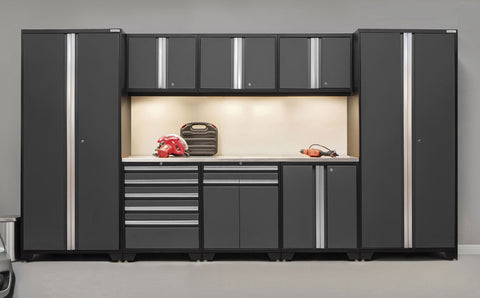Ultra-strong, easy to install, and adaptable to your space; NewAge Products Pro Series Wall Mounted Steel Shelves offer a versatile way to keep organized, and maximize off-the-floor storage space in your garage.