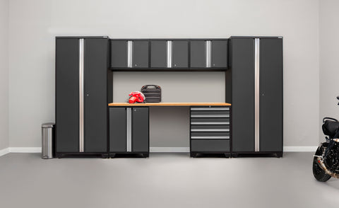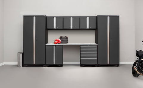 Ultra-strong, easy to install, and adaptable to your space; NewAge Products Pro Series Wall Mounted Steel Shelves offer a versatile way to keep organized, and maximize off-the-floor storage space in your garage.