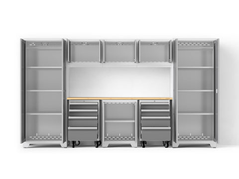 Accessorize your cabinet set for even more functionality, with the High-Gloss Silver Slatwall Backsplash. Built with high-strength steel for a superior look and feel, the Slatwall Backsplash visually takes your cabinet set to the next level.