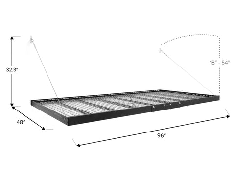 4x8ft Wall Mounted Steel Shelf: - 96 in. W x 48 in. D x 18 in.-54 in. H